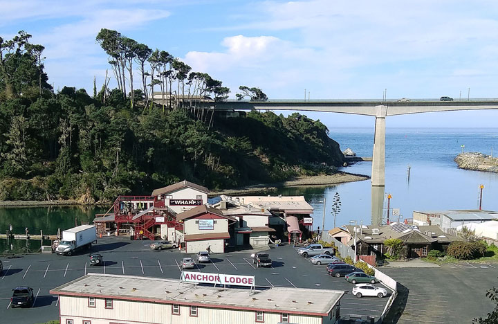 The waterfront of picturesque Noyo Harbor is at your feet from one of the rooms of the Wharf.